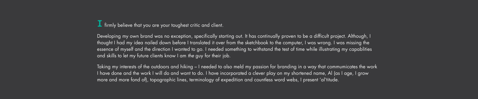 A personal project for my freelance graphic design endeavors. I have incorporated a self-designed typeface into my own branding.