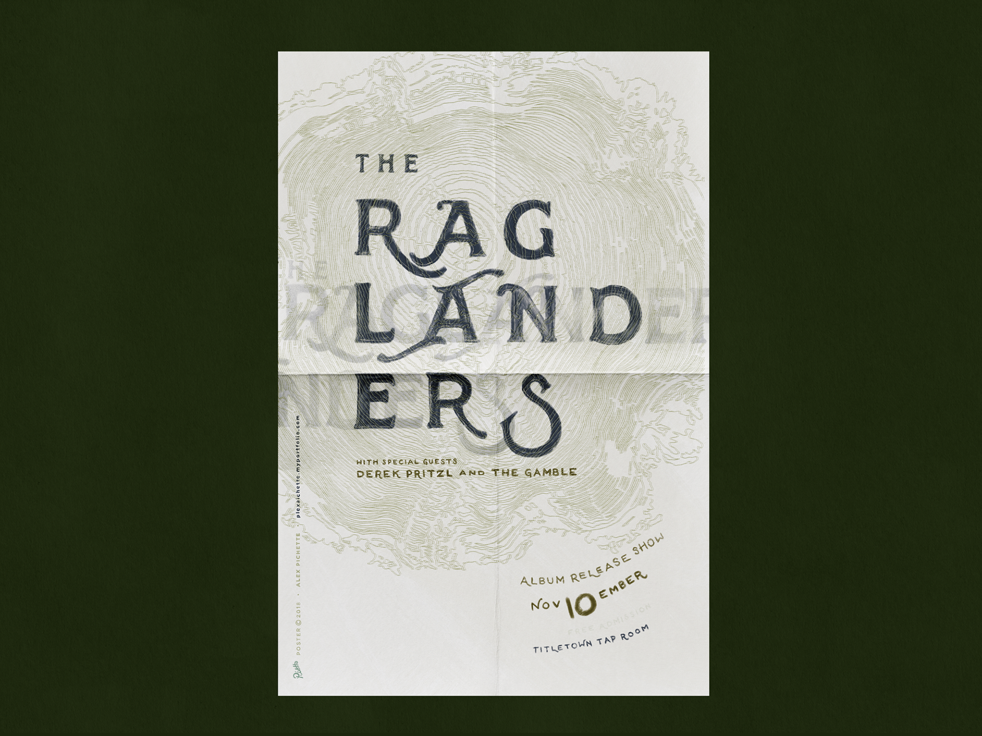 Concert poster for The Raglanders album release show, hosted by Titletown Brewing Co., Green Bay, WI.